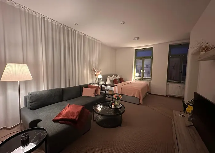 O apartamento Strassi 1 Apartamento oferece cozinha totalmente equipada, bem como quartos com sofá, máquinas de café/chá e área de estar. Friedensbrucke está a 1.1 km da propriedade, enquanto Alaunbergwerk "Ewiges Leben" está a cerca de 1.8 km.